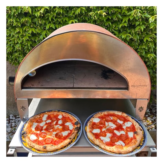 De oven is gebruiksklaar binnen 30 minuten, geschikt voor 2 pizza's, deze zijn klaar na 2 minuten.